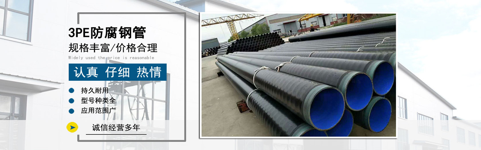 ? 天津市億銘泰鋼鐵有限公司是3pe防腐鋼管類產品的生產廠家,地理位置優越,交通極為便利。3pe防腐鋼管廠家是一家專業生產銷售防腐無縫鋼管、防腐螺旋鋼管、3pe防腐鋼管、防腐管、以及各種配套管件于一體的大型鋼管企業。擁有高水準持續供貨和敏捷的全方位服務能力。3pe防腐鋼管廠家主要產品有3PE防腐鋼管、防腐鋼管,防腐管,防腐管道,,廣泛應用于給排水、消防噴淋、中央空調循環水、去離子純凈水、電光纜護套等領域。產品涉及高速公路、隧道、民用、建筑、工業、化工、電力、石油、醫藥、海洋、天然氣、船舶、農業、煤礦等行業。該類產品具有耐腐蝕、耐低溫、不滲漏、環保節能、成本低、壽命長等優良特性;環保節能無污染,并可回收再利用,符合建設節約型社會和發展循環經濟的要求,是鍍鋅管、水泥管和鑄鐵管的替代產品。 [MORE + ]